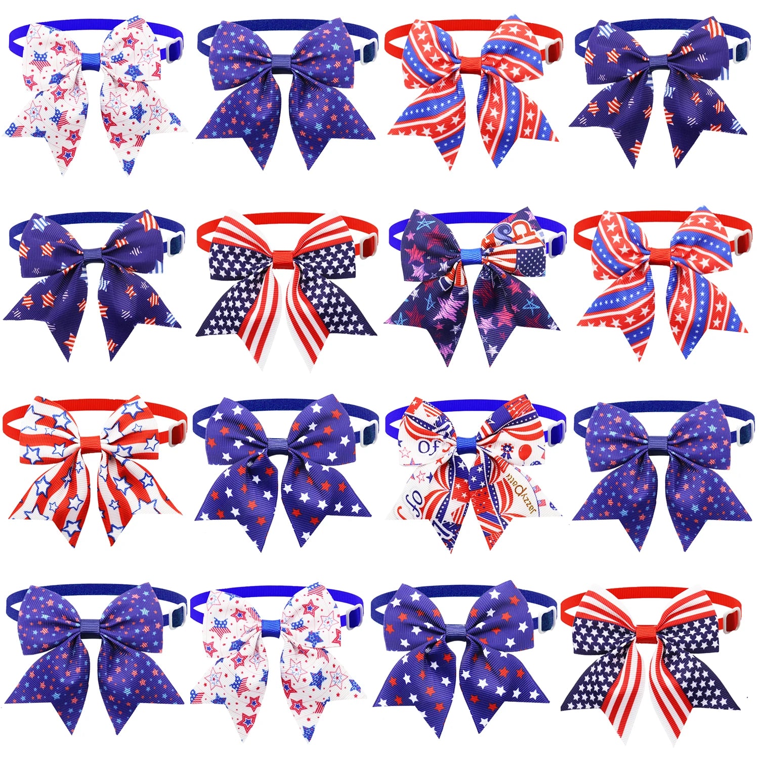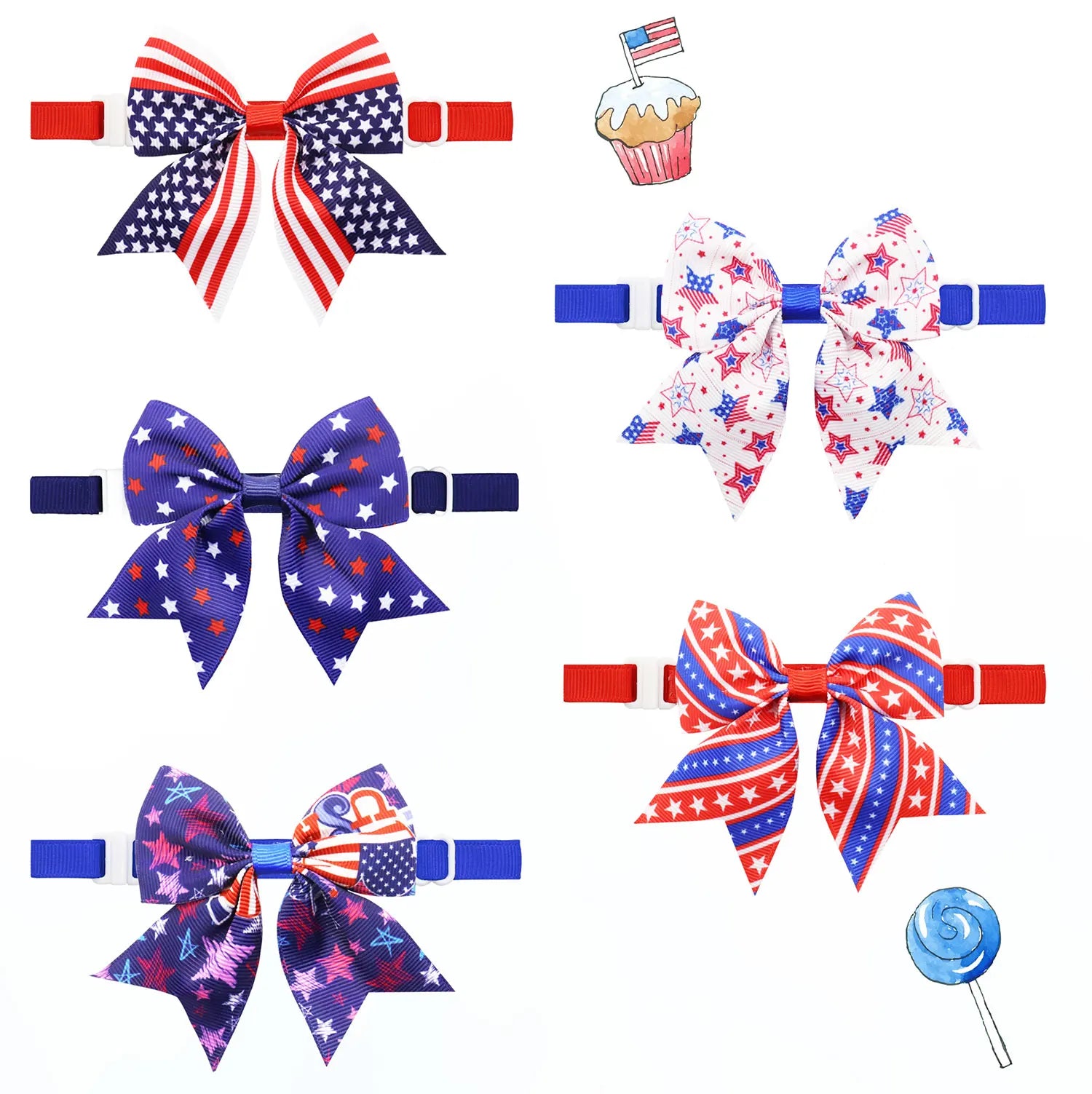 50/100Pcs Patriotic Dog Bows USA Flag Pattern Dog Grooming Bows 4th July Cat Bows Ties Pet Accessories Bowties Neckties For Dogs