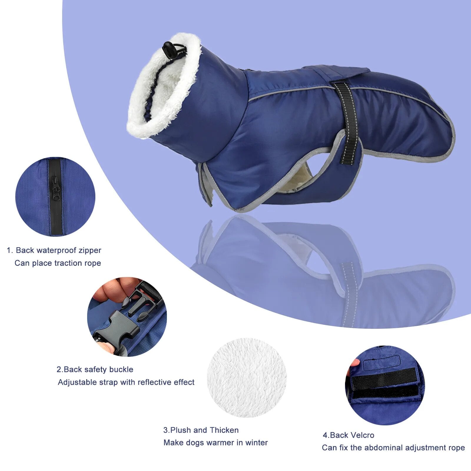 Reflective Warm Large Dog Waterproof Jacket & Plush Coat