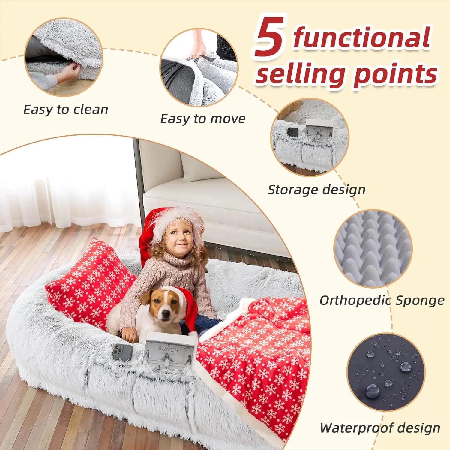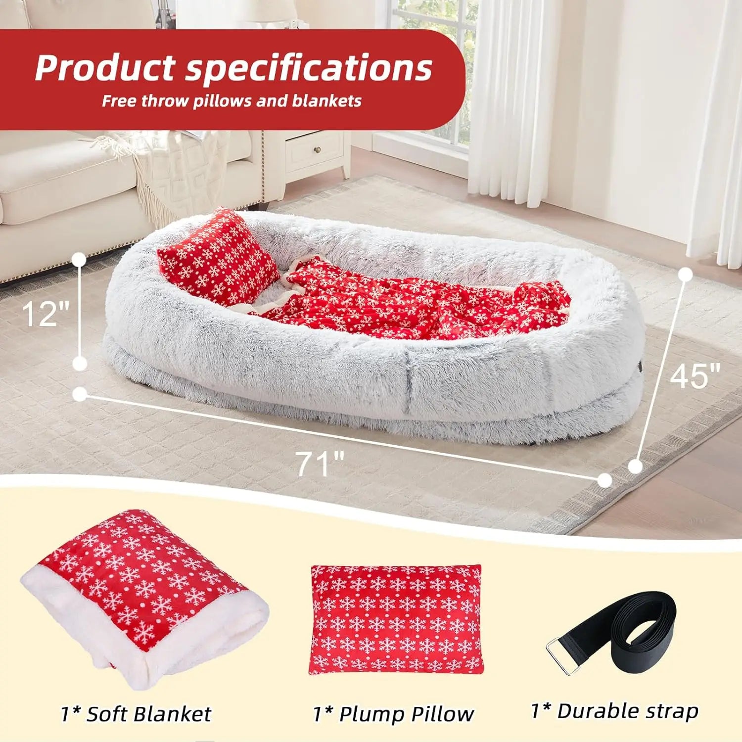 Human Dog Bed, 71"x45"x14" Dog Beds for Humans Size Fits You and Pets, Washable Human Dog Bed for People Doze Off