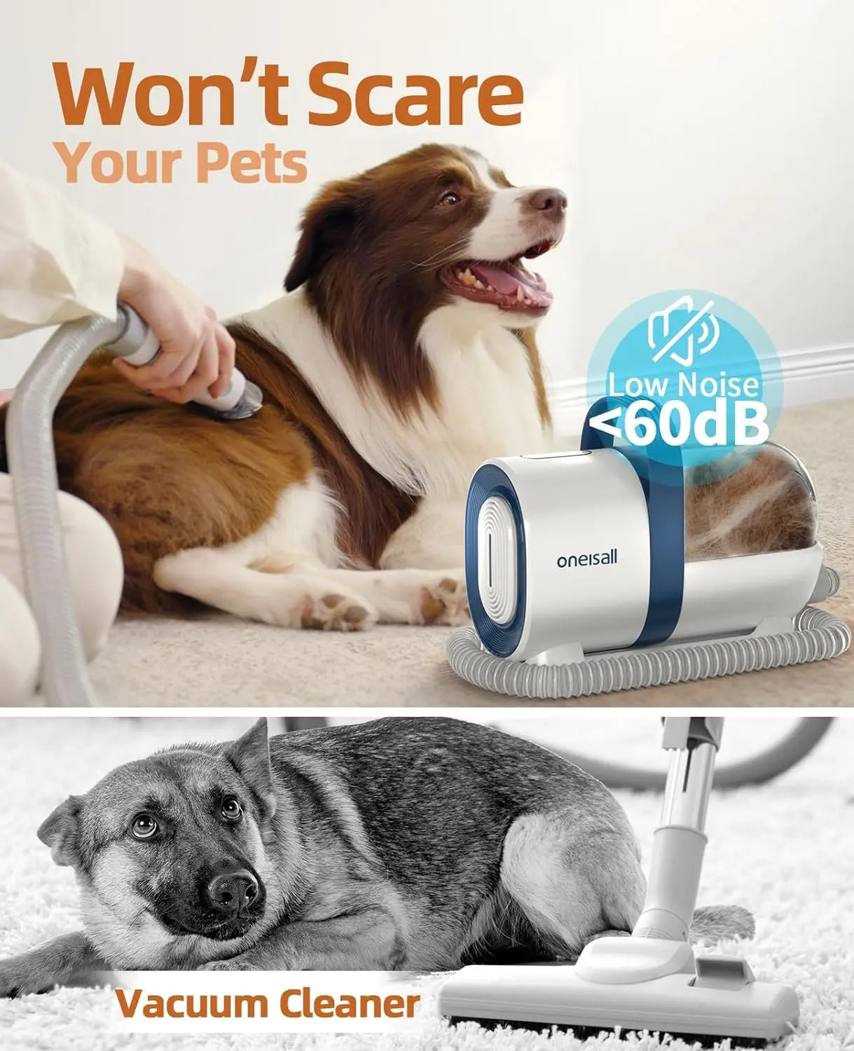 oneisall Dog Hair Vacuum & Dog Grooming Kit, Pet Grooming Vacuum with Pet Clipper Nail Grinder, 1.5L Dust Cup Dog Brush