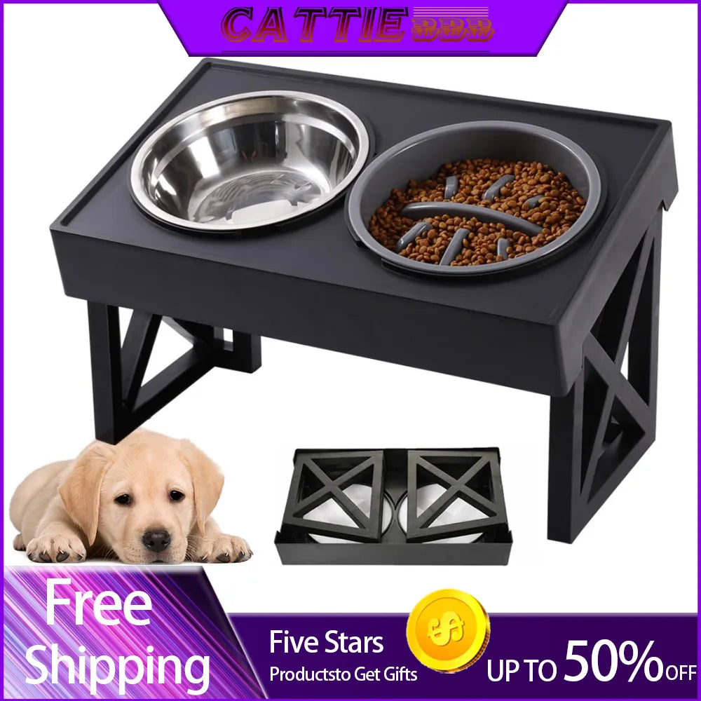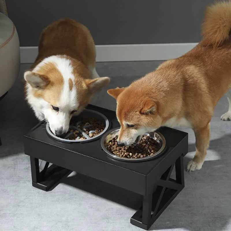 Elevated Adjustable Height Food and Water Dish Bowl Stand